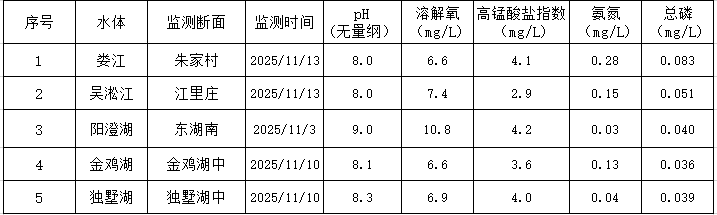 2025年11月蘇州工業園區地表水監測結果