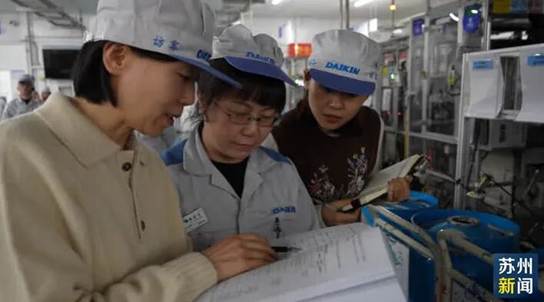 大金電器機械(蘇州)有限公司總務部副部長徐韋玉介紹,這個產線首先對環境非常友好,導入了水溶性的漆,二氧化碳的排放會降低。自動化設備的導入提高了產能,能夠立即響應客戶的需求。