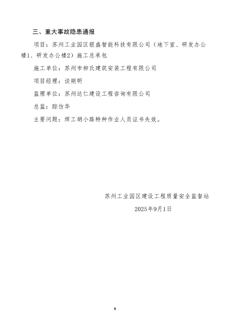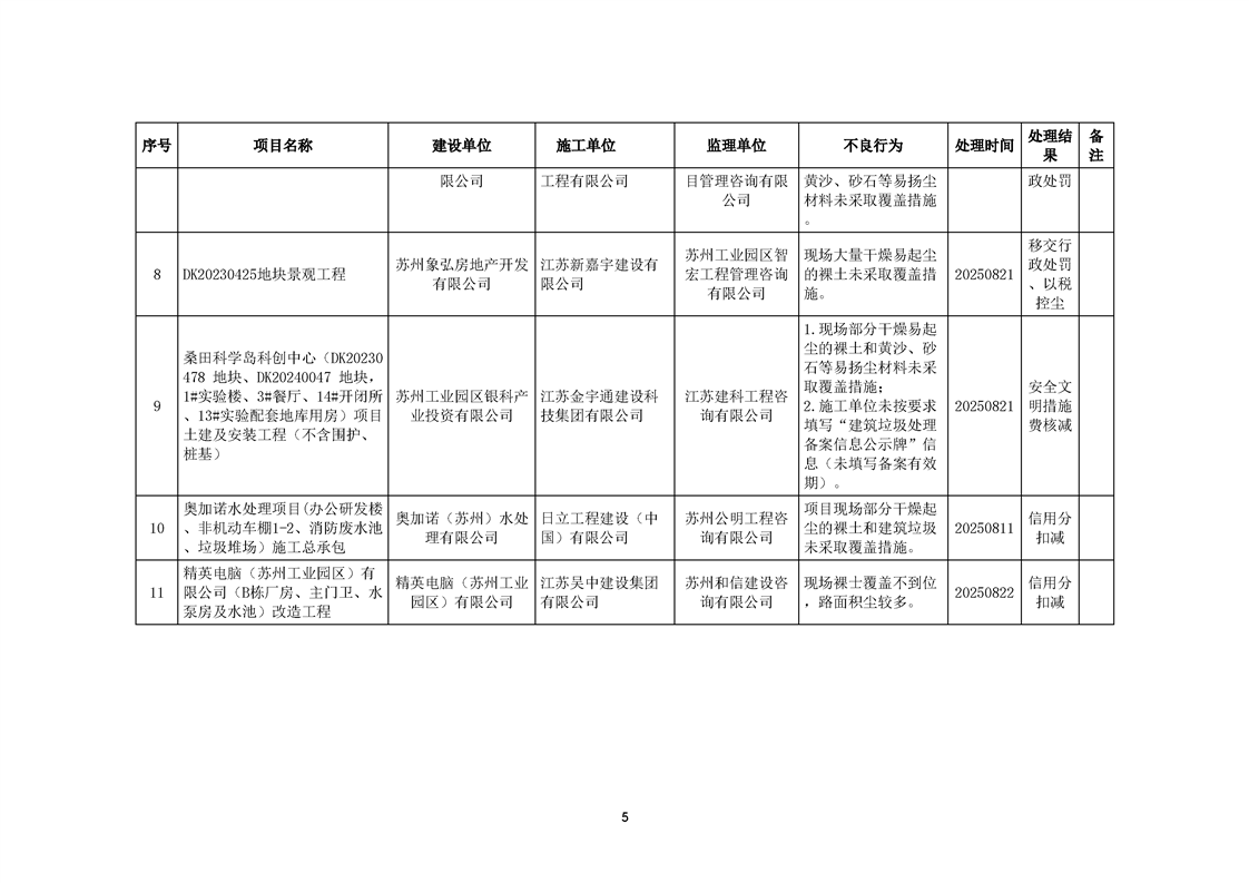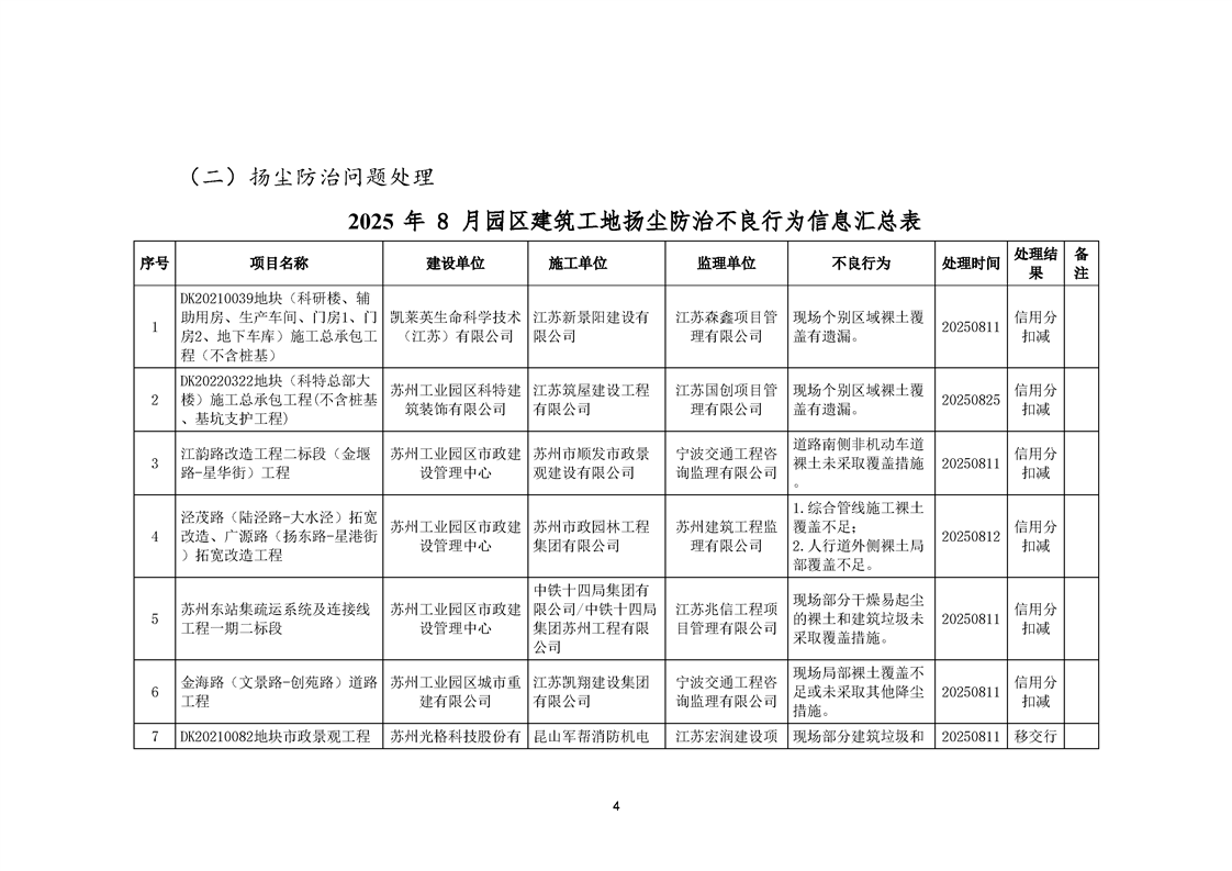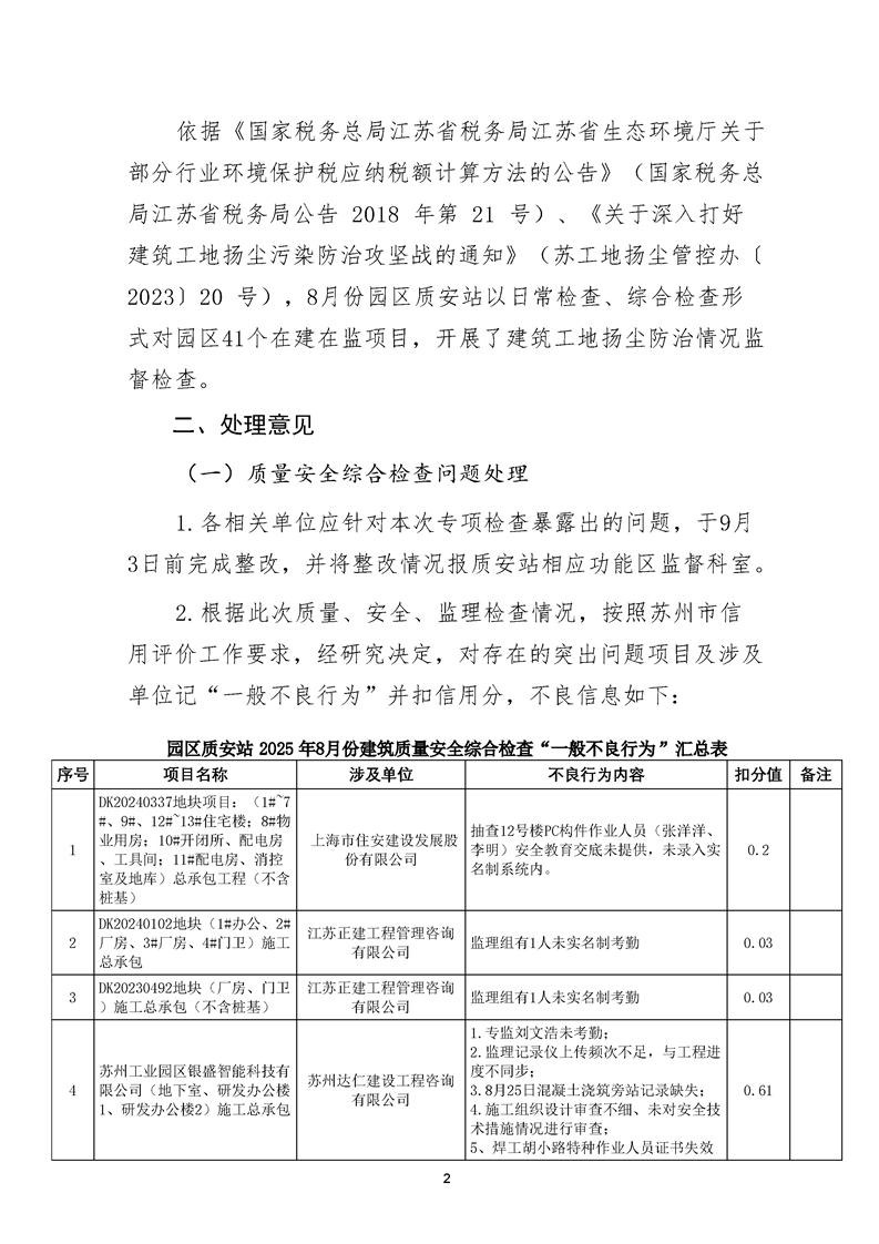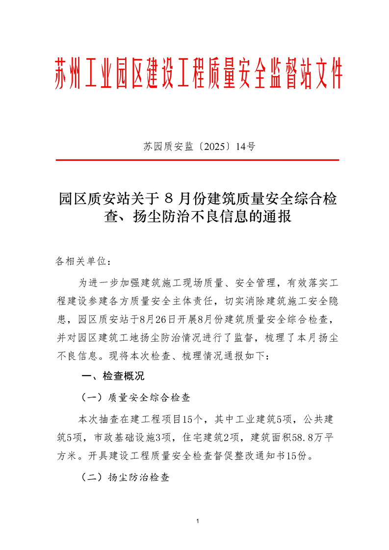 園區(qū)質(zhì)安站關(guān)于8月份建筑質(zhì)量安全綜合檢查、揚(yáng)塵防治不良信息的通報(bào)