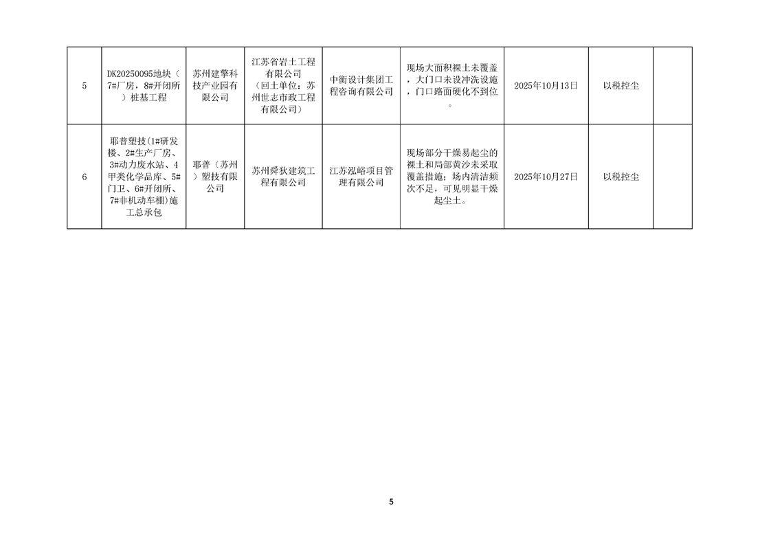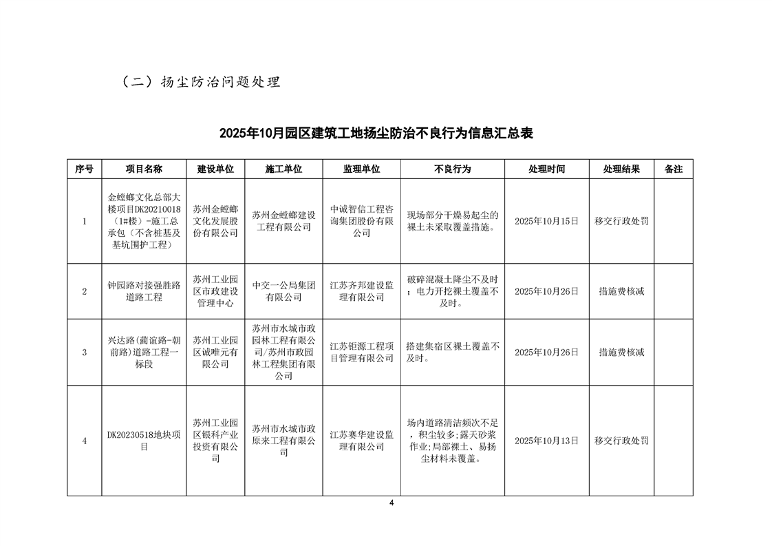 園區質安站關于10月份建筑質量安全綜合檢查、揚塵防治不良信息的通報