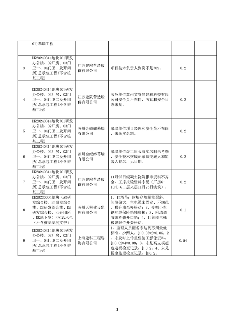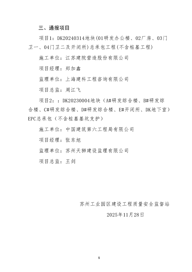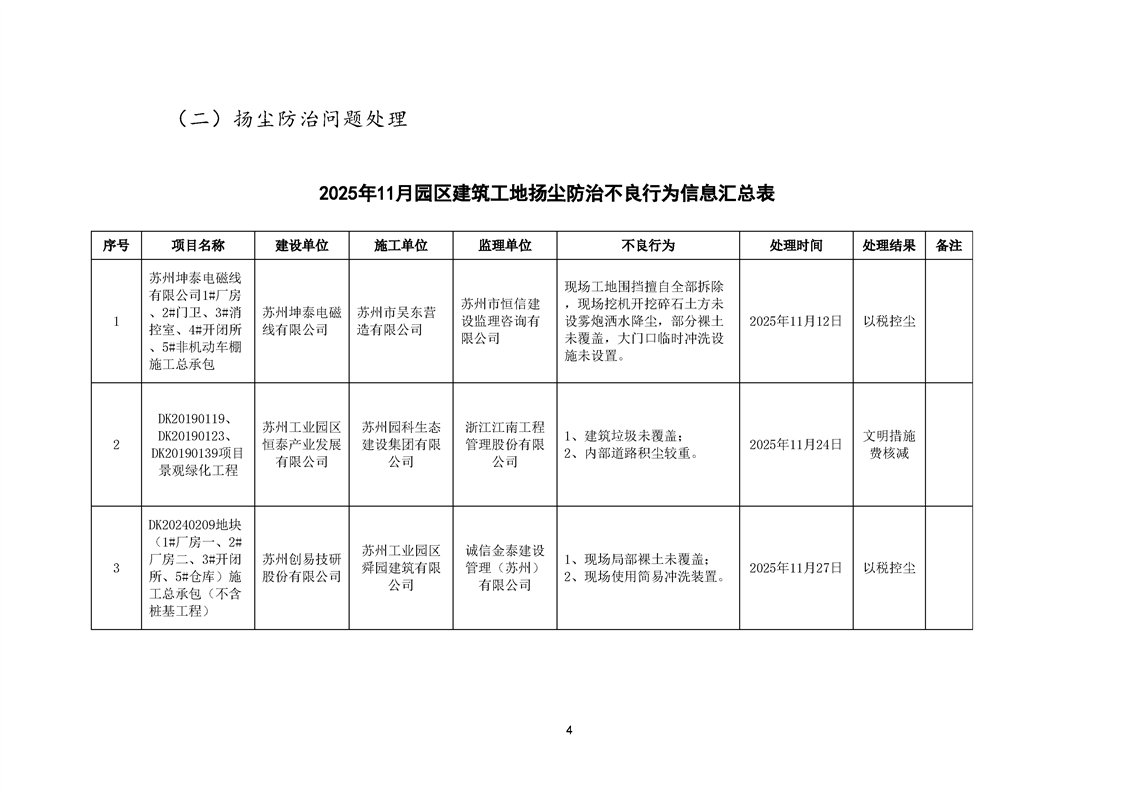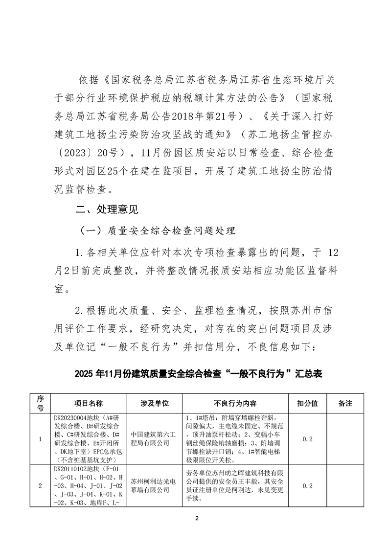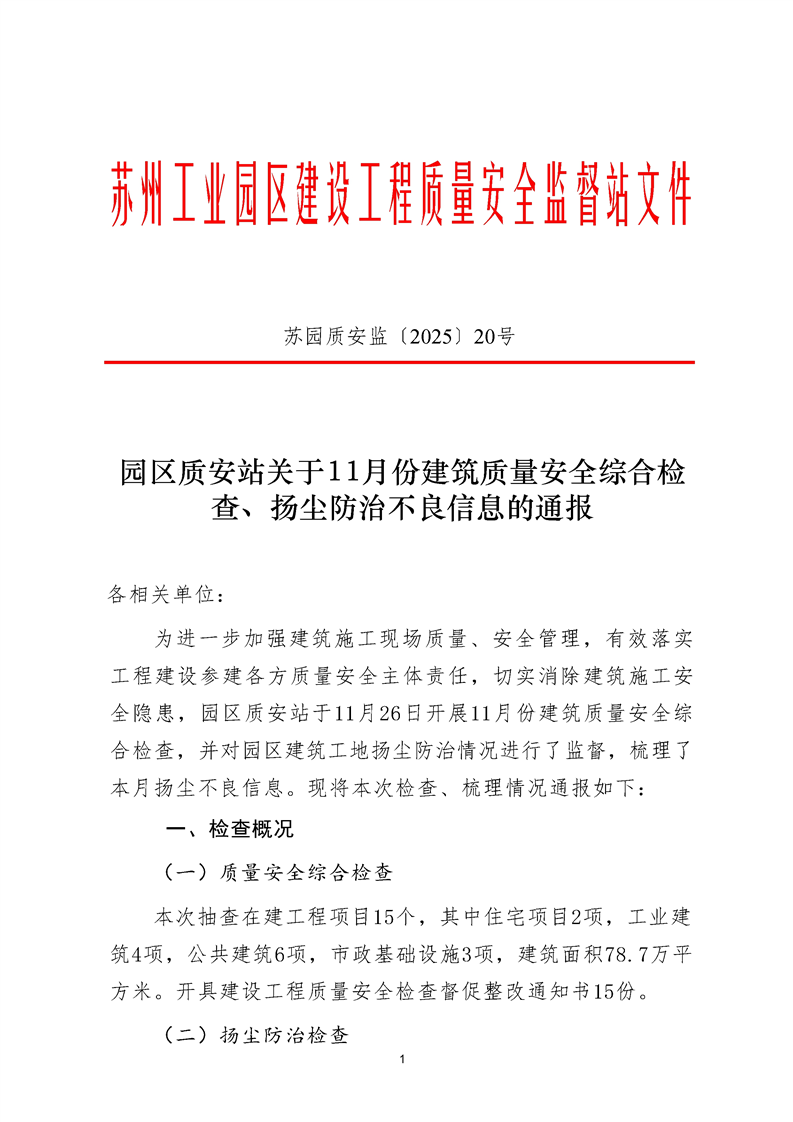 園區(qū)質(zhì)安站關(guān)于11月份建筑質(zhì)量安全綜合檢查、揚塵防治不良信息的通報