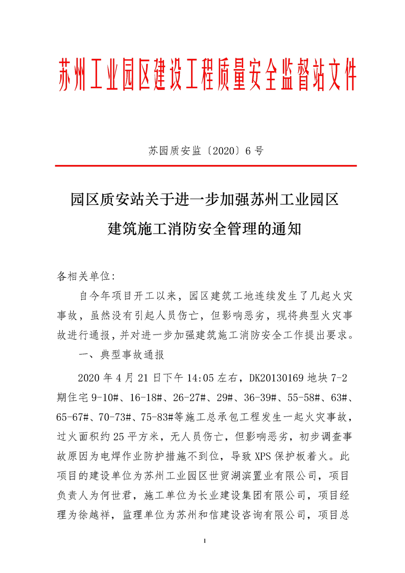 園區(qū)質(zhì)安站關(guān)于進(jìn)一步加強(qiáng)蘇州工業(yè)園區(qū)建筑施工消防安全管理的通知