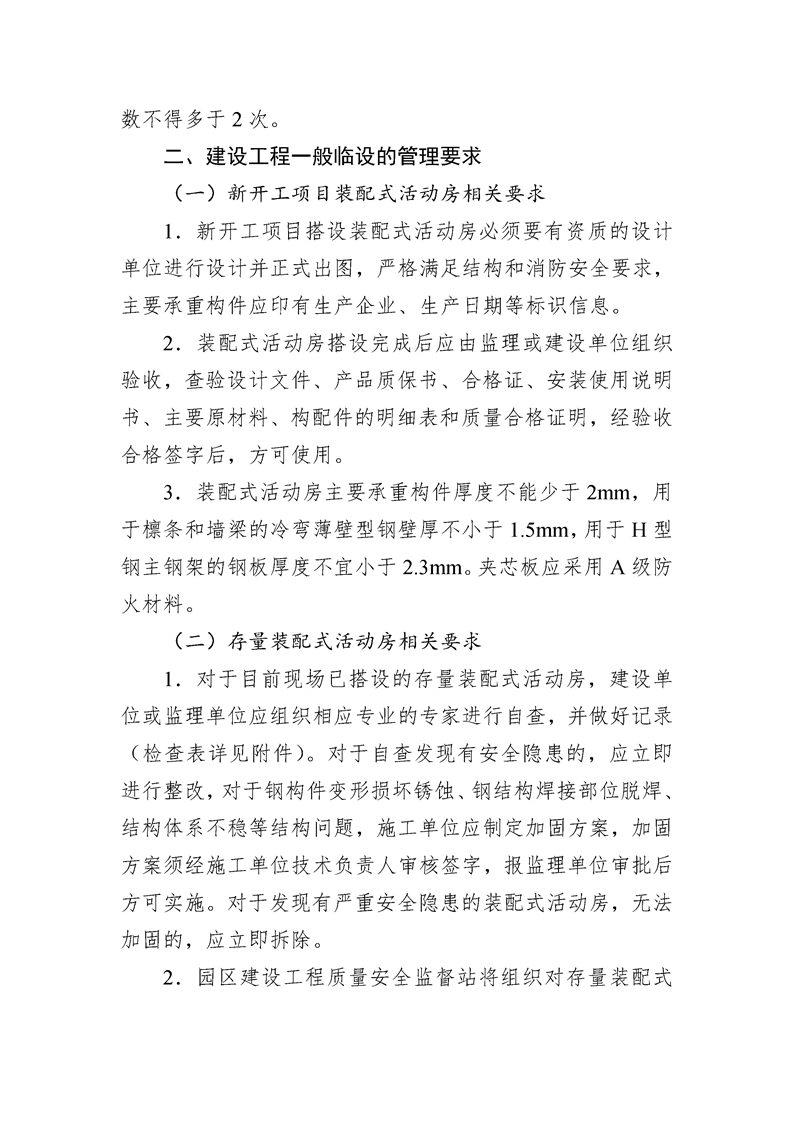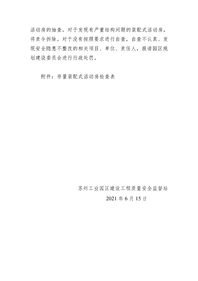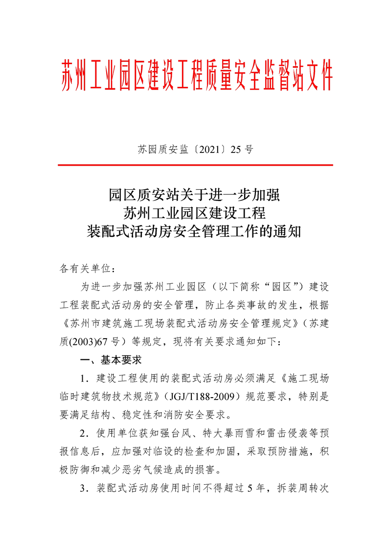 園區(qū)質(zhì)安站關(guān)于進(jìn)一步加強(qiáng)蘇州工業(yè)園區(qū)建設(shè)工程裝配式活動(dòng)房安全管理工作的通知