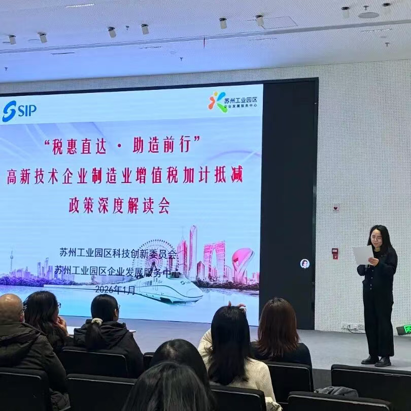 為進一步推動園區(qū)高新技術(shù)企業(yè)與制造業(yè)高質(zhì)量發(fā)展,助力企業(yè)精準掌握并用足用好增值稅加計抵減等財稅優(yōu)惠政策,1月22日下午,“稅惠直達·助造前行”——蘇州工業(yè)園區(qū)高新技術(shù)企業(yè)制造業(yè)增值稅加計抵減政策深度解讀會成功舉辦。來自園區(qū)百余家企業(yè)近200位負責(zé)人、財務(wù)及稅務(wù)管理人員齊聚一堂,共學(xué)政策、共話發(fā)展。