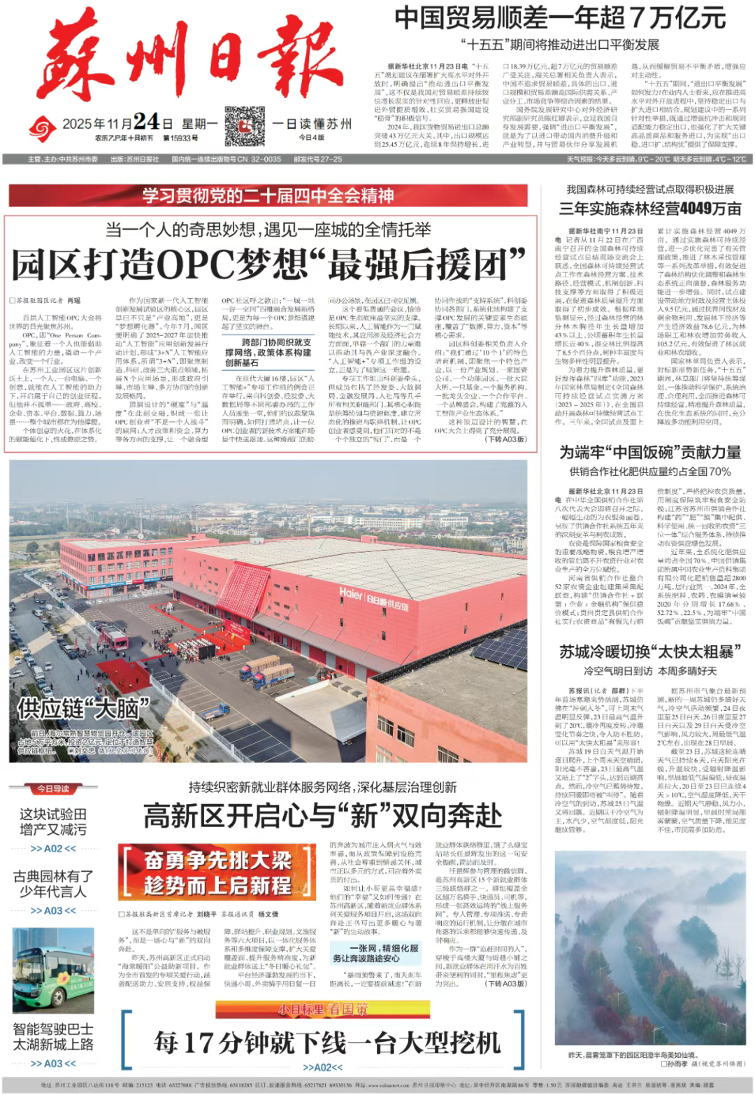 《蘇州日報》頭版頭條:園區打造OPC夢想“最強后援團”