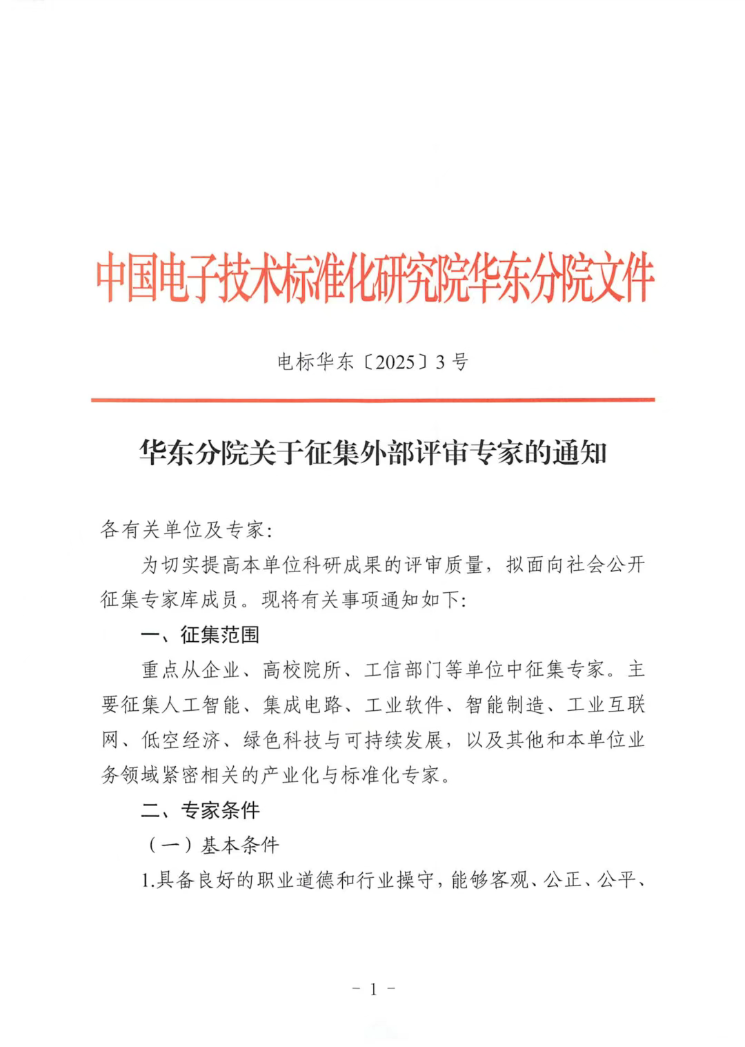 中國電子技術標準化研究院華東分院關于征集外部評審專家的通知