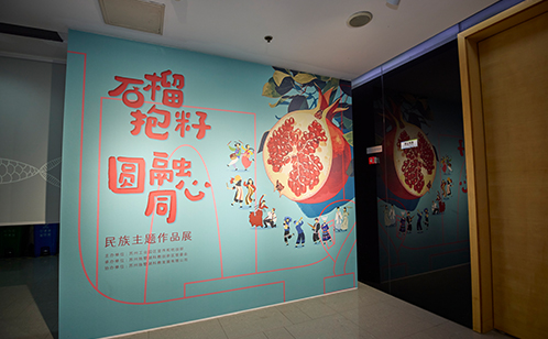 6月7日,“石榴抱籽 圓融同心”民族文化藝術作品展在蘇州獨墅湖城市藝術客廳開幕。