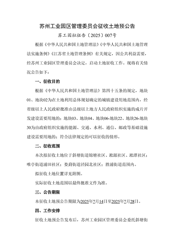 蘇工園擬征告〔2025〕007號--征收土地預公告