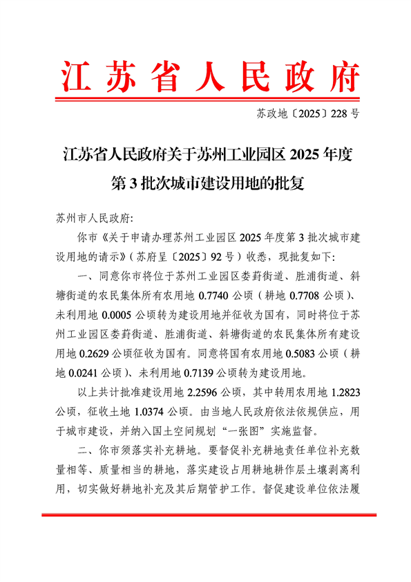蘇州工業(yè)園區(qū)2025年度第3批次城市建設(shè)用地-批文