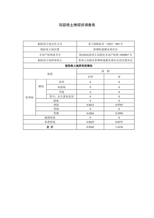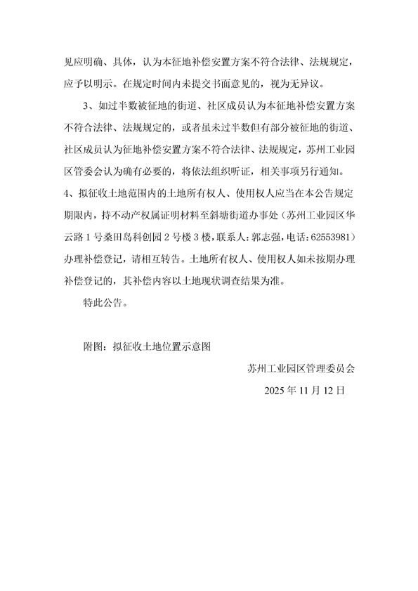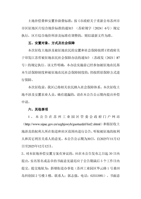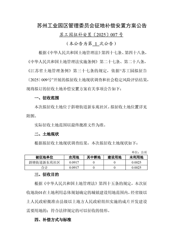蘇州工業(yè)園區(qū)管理委員會征地補償安置方案公告(蘇工園征補安置〔2025〕007號)