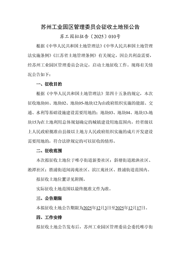 蘇工園擬征告〔2025〕010號--征收土地預公告