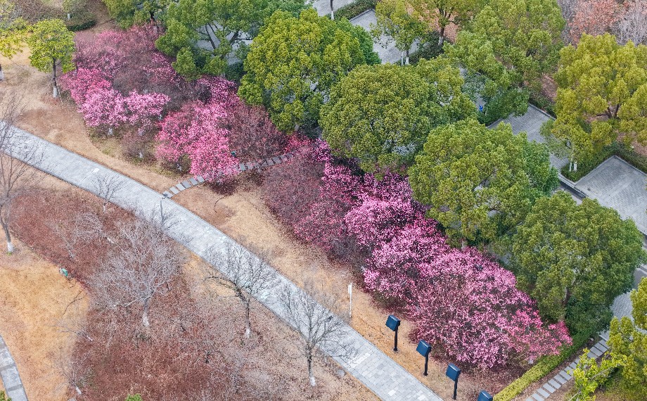 園區(qū)的城市公園,是市民家門口的賞梅好去處,白塘公園、東沙湖公園便是其中代表,下樓就能與梅香撞個滿懷。梅開盛時,遠觀粉梅如霞蔚滿天,花骨朵綴于墨枝,漫步其間,梅香縈繞,一步一景皆含詩情。