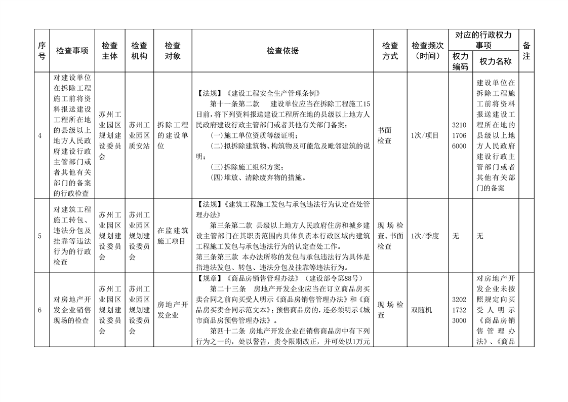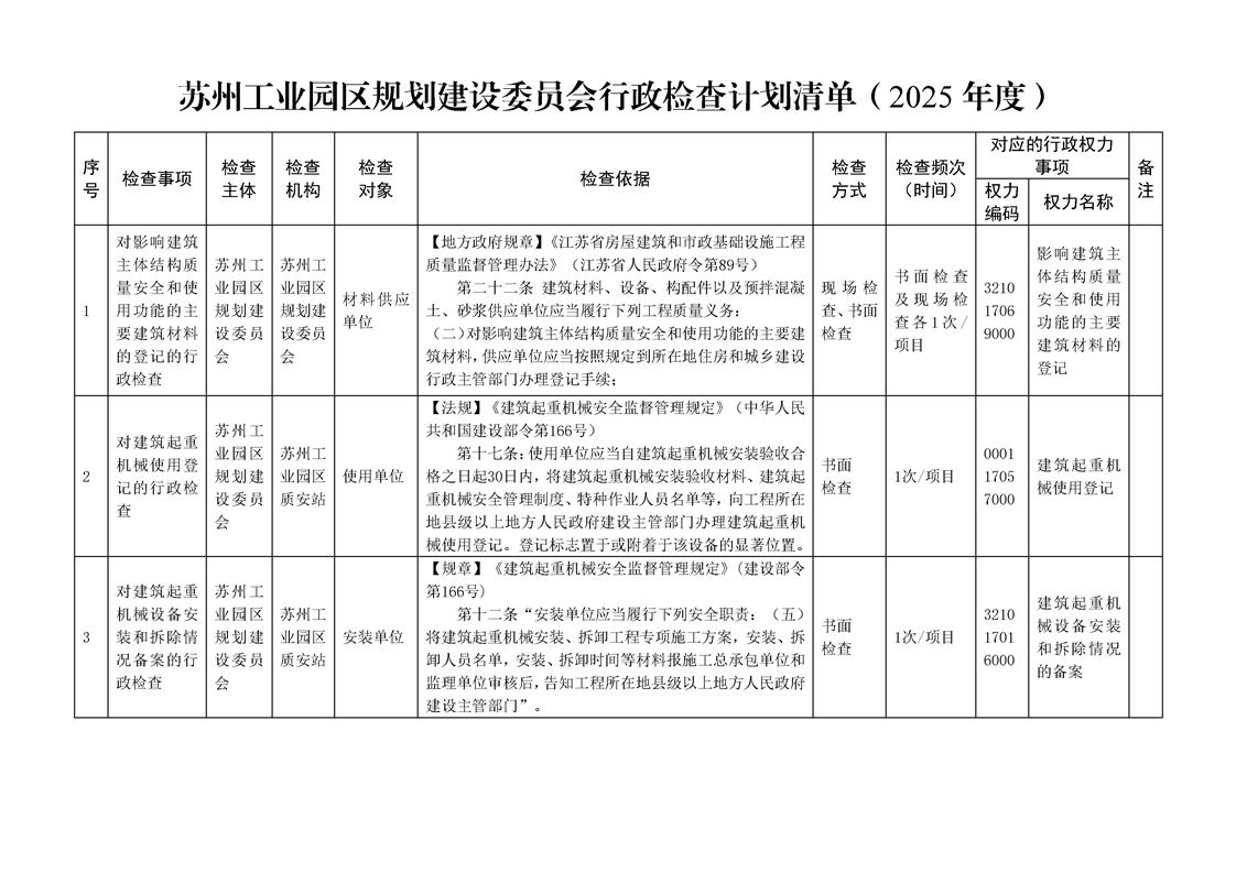 蘇州工業(yè)園區(qū)規(guī)劃建設(shè)委員會(huì)行政檢查計(jì)劃清單(2025年度)