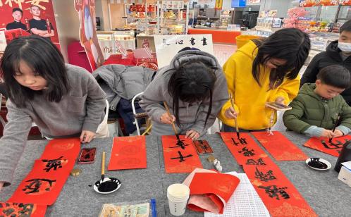 2月1日の午後、貴都コミュニティは10數名の青少年ボランティアを組織し、コミュニティ內の盒馬店舗を訪れ、その場で春聯や「福」の字を書き、行き交う客や配達員、清掃作業員などに贈り、コミュニティの溫かみを伝えた。