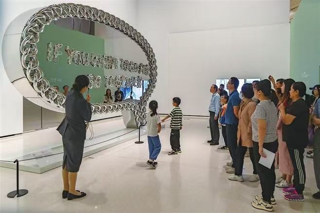 “華獅藝錦——中國(guó)·新加坡當(dāng)代藝術(shù)三十年”正在金雞湖畔的蘇州當(dāng)代美術(shù)館熱展,作品集納了兩國(guó)藝術(shù)家作品近百件。圖為昨日美術(shù)館講解員正在為觀(guān)眾講解。