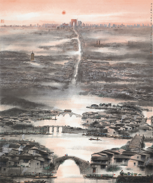 楊明義是蘇州籍畫家,他在80歲高齡創(chuàng)作的水墨作品《今日蘇州人間天堂》在此次展覽中亮相。該作品由近及遠(yuǎn),描繪出蘇州古今不同的時(shí)代風(fēng)貌——既有小橋流水、古塔園林,也有蘇州工業(yè)園區(qū)的繁華盛景,體現(xiàn)了江南水鄉(xiāng)的發(fā)展變遷。“我去過新加坡,也因?yàn)樗囆g(shù)的淵源,對(duì)新加坡有著深厚的感情。藝術(shù)需要交流,通過一次次互動(dòng),相信未來(lái)中新文化合作必將結(jié)出更加豐碩的成果。”楊明義說。