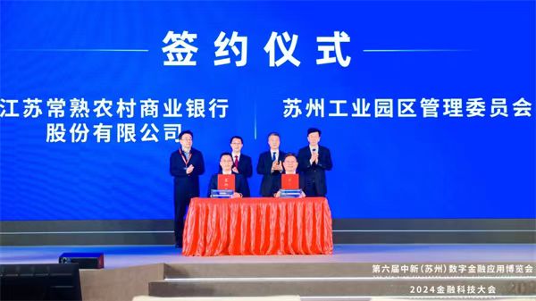 開幕式現場,蘇州工業園區管理委員會分別與中國金融電子化集團有限公司、安永(中國)企業咨詢有限公司、東吳人壽保險股份有限公司、江蘇常熟農村商業銀行股份有限公司進行戰略合作簽約,常熟農商銀行科創金融中心正式揭牌,多方資源匯聚,多條線合作持續加強。