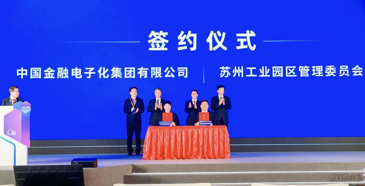 開幕式現(xiàn)場,蘇州工業(yè)園區(qū)管理委員會分別與中國金融電子化集團有限公司、安永(中國)企業(yè)咨詢有限公司、東吳人壽保險股份有限公司、江蘇常熟農(nóng)村商業(yè)銀行股份有限公司進行戰(zhàn)略合作簽約,常熟農(nóng)商銀行科創(chuàng)金融中心正式揭牌,多方資源匯聚,多條線合作持續(xù)加強。