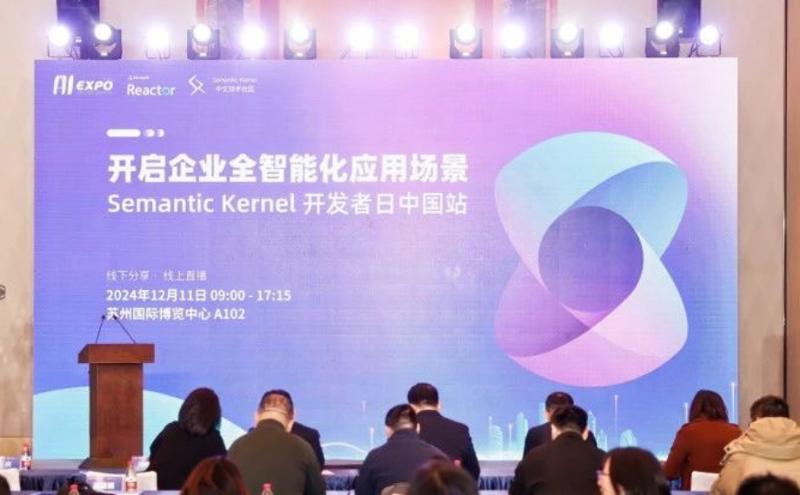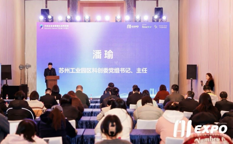12月11日,2024全球人工智能產品應用博覽會(以下簡稱“2024全球智博會”)主題分論壇之一,開啟企業全智能化應用場景——SemanticKernel開發者日中國站論壇在蘇州國際博覽中心成功舉辦。本次活動是由微軟Reactor、Semantic Kernel中文技術社區共同承辦。蘇州工業園區(以下簡稱“園區”)科創委黨組書記、主任潘瑜,SISPARK(蘇州國際科技園)副總裁吳文杰,微軟中國公共事業部政府及國企行業總經理蔣圣出席論壇。