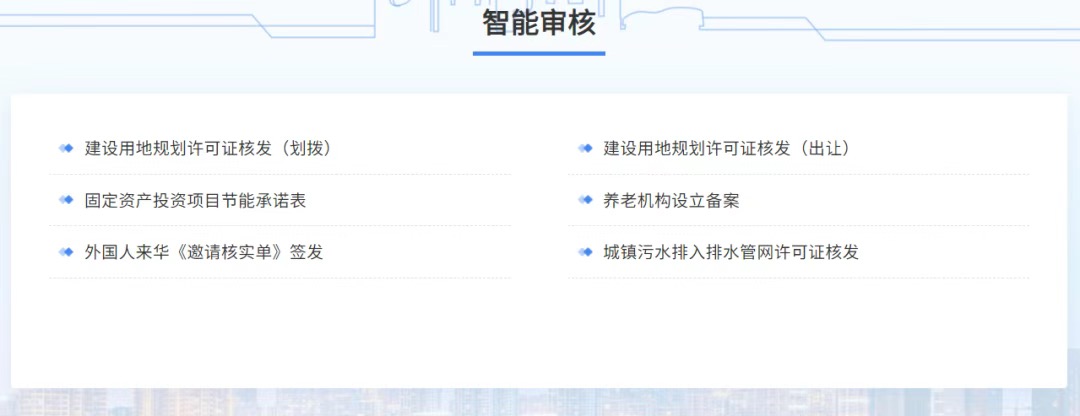 以“電子核驗(yàn)”替代“紙質(zhì)流轉(zhuǎn)”!智能審批模塊當(dāng)前集成建設(shè)用地規(guī)劃許可證核發(fā)(劃撥)、建設(shè)用地規(guī)劃許可證核發(fā)(出讓)、固定資產(chǎn)投資項(xiàng)目節(jié)能承諾表、養(yǎng)老機(jī)構(gòu)設(shè)立備案、外國人來華《邀請(qǐng)核實(shí)單》簽發(fā)、城鎮(zhèn)污水排入排水管網(wǎng)許可證核發(fā)6項(xiàng)業(yè)務(wù)。申報(bào)人無需前往現(xiàn)場(chǎng)辦理,在家即可上傳申請(qǐng)資料,實(shí)時(shí)查看審批結(jié)果。對(duì)于審批人員來說,智能填表既提高了工作效率,又提升了審批的科學(xué)性、準(zhǔn)確性。