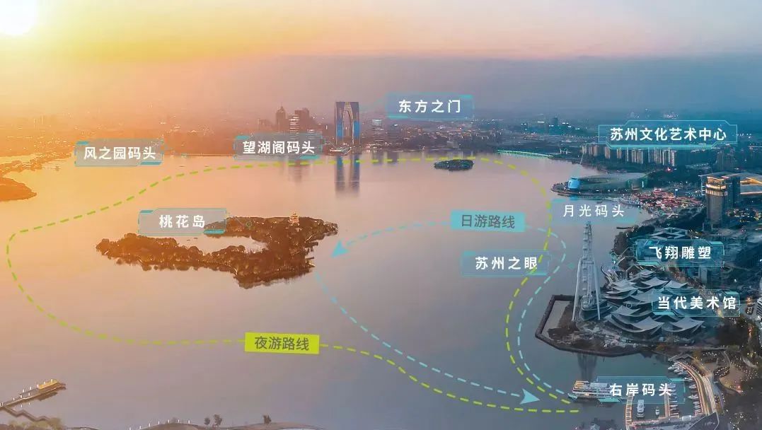 為提升水上旅游服務(wù)品質(zhì),園區(qū)加大運力、拓展航線,右岸新航線串聯(lián)起園區(qū)金雞湖水上靚麗風(fēng)景線,助力打造金雞湖右岸場景串聯(lián)、客流聯(lián)動、人氣共享的文旅消費新場景。新航線包含日游和夜游,其中日游為登島線,沿途觀賞當(dāng)代美術(shù)館、“蘇州之眼”摩天輪、“飛翔”雕塑等城市地標(biāo)后,登上桃花島游覽;夜游為環(huán)湖線,串起蘇州文化藝術(shù)中心、東方之門、金雞湖音樂噴泉等標(biāo)志性景觀,充分滿足游客不同時間段的多元體驗需求。