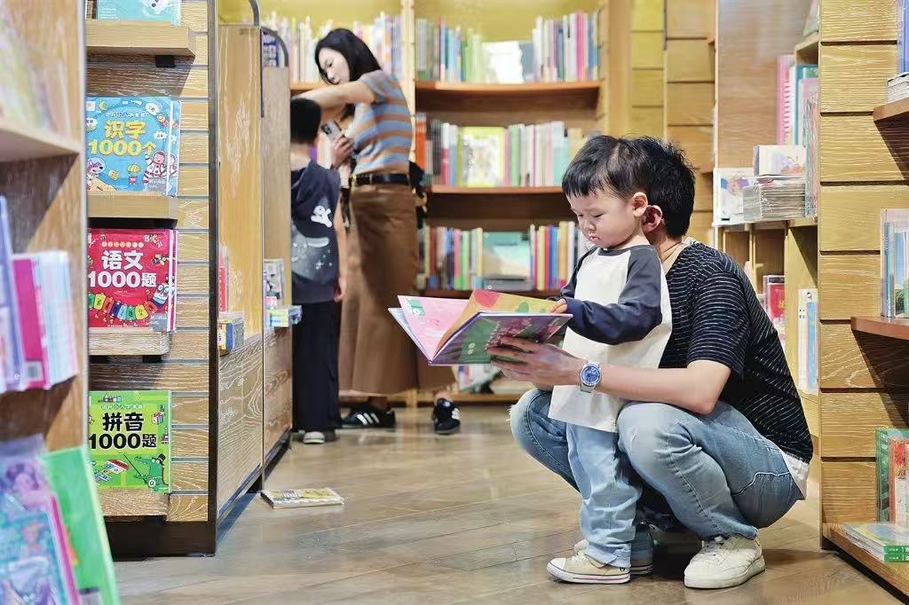 昨天下午,園區(qū)誠品書店內(nèi)人氣滿滿,有家長帶著孩子一起徜徉書海。 記者 倪黎祥攝