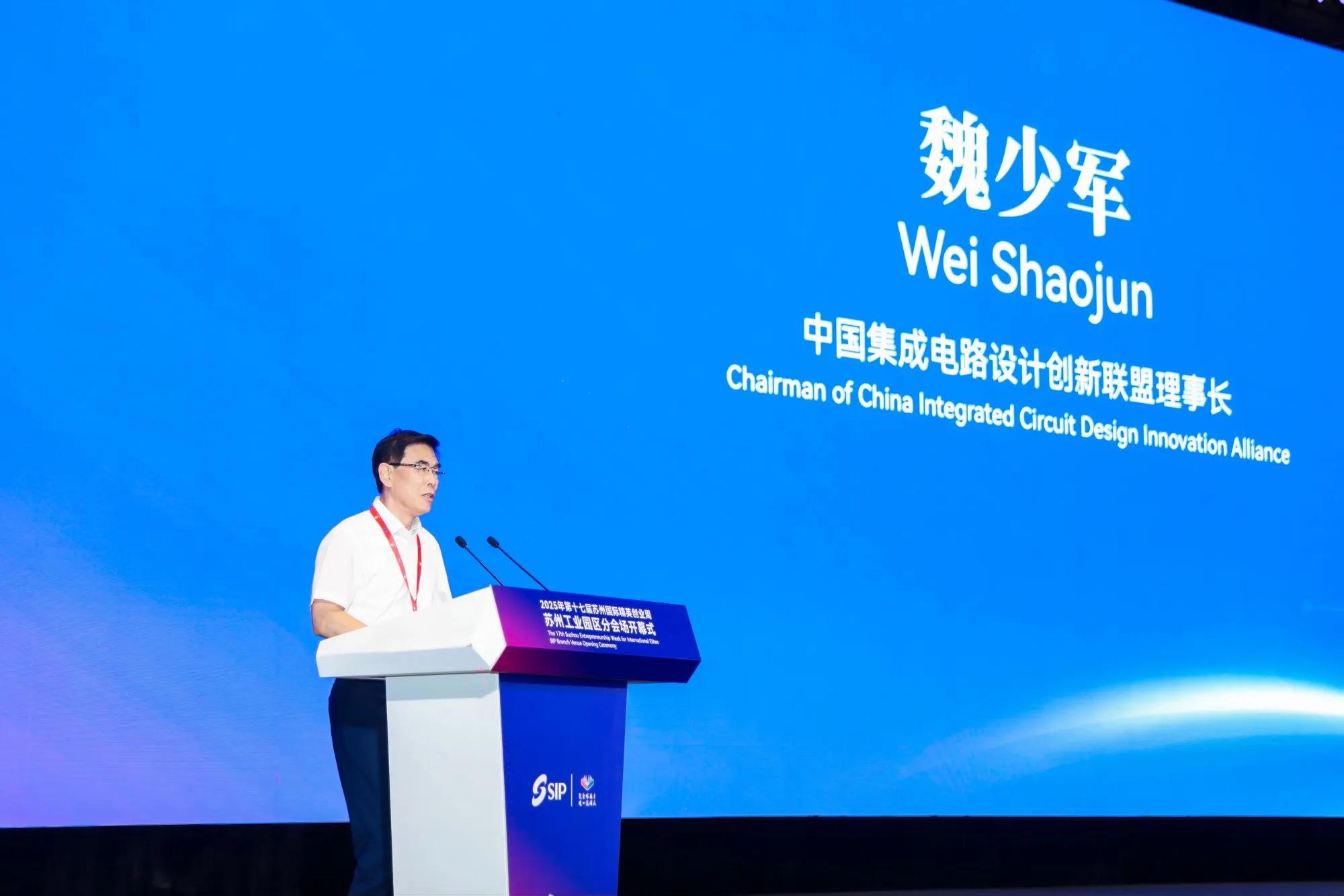 7月11日,第十七屆蘇州國際精英創業周園區分會場暨集成電路產才融合大會在蘇州國際博覽中心啟幕。本屆大會以“芯聚才涌智創未來”為主題,聚焦高層次人才引進、高質量項目落地和高水平成果轉化,吸引了海內外頂尖人才、院士專家、高校代表及企業領袖齊聚金雞湖畔,共謀創新發展新未來。