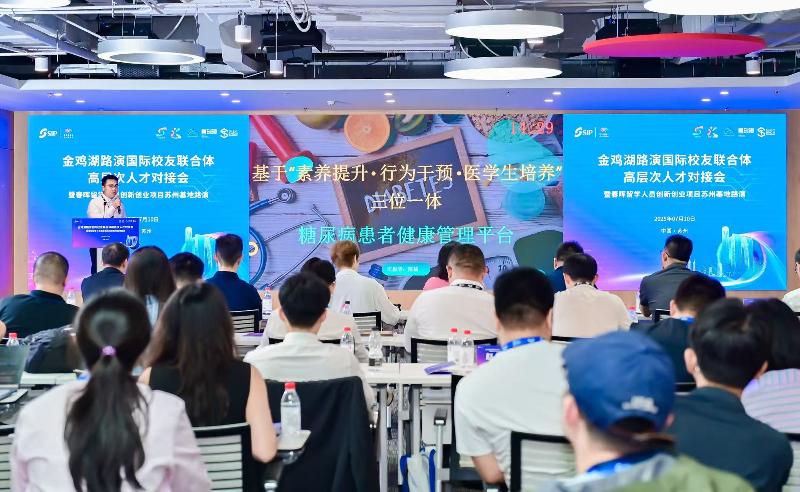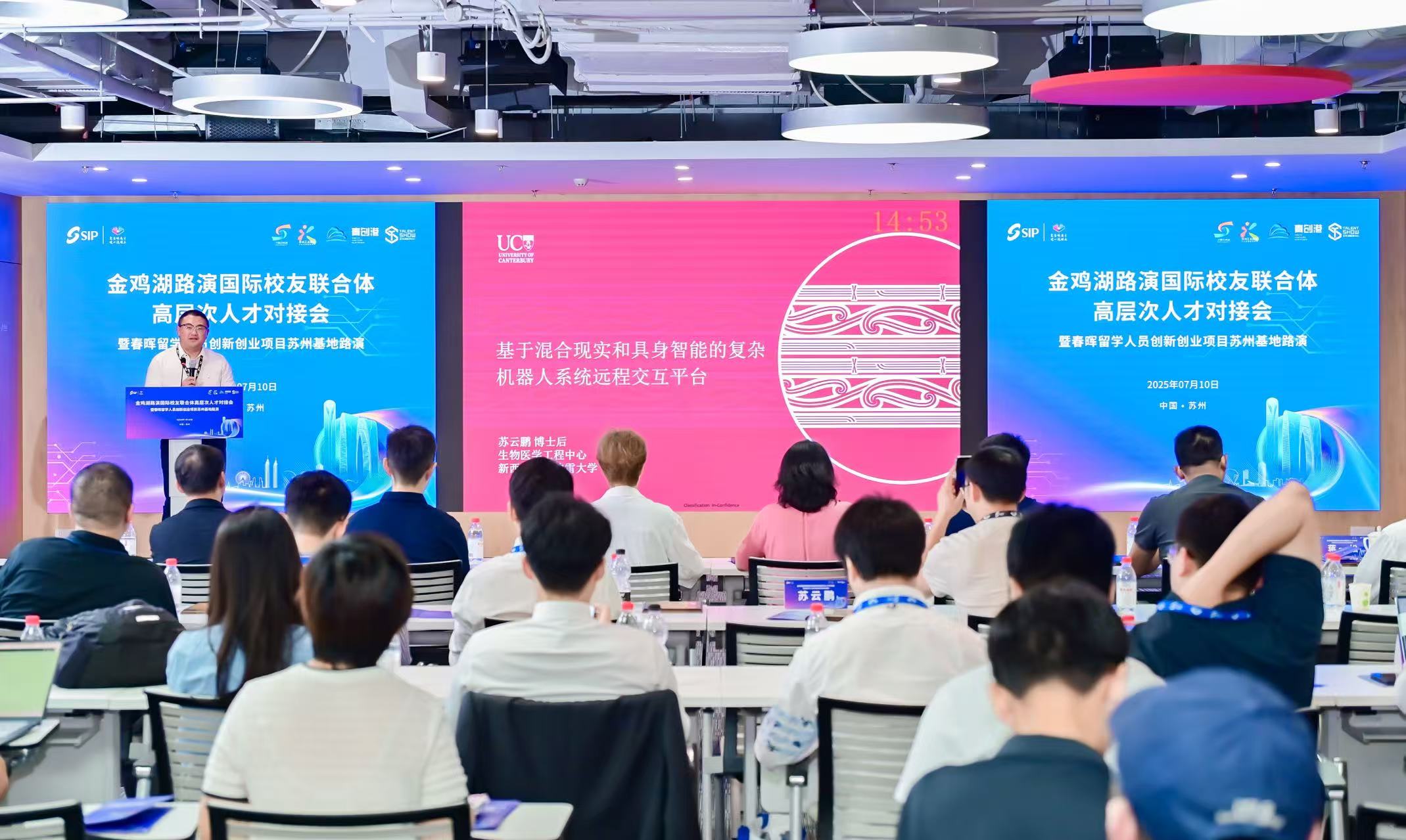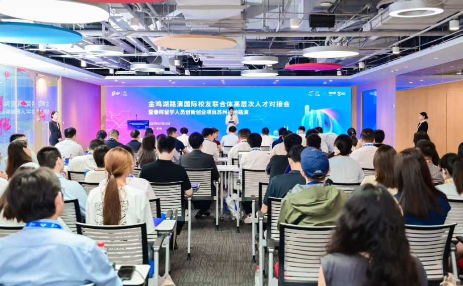 7月10日,2025第十七屆蘇州國(guó)際精英創(chuàng)業(yè)周園區(qū)分會(huì)場(chǎng)分項(xiàng)活動(dòng)——金雞湖路演國(guó)際校友聯(lián)合體高層次人才對(duì)接會(huì)暨春暉留學(xué)人員創(chuàng)新創(chuàng)業(yè)項(xiàng)目蘇州基地路演在國(guó)際人才港舉辦。八大國(guó)際校友組織助陣全球引才,來(lái)自7個(gè)國(guó)家(地區(qū))的9個(gè)海內(nèi)外博士創(chuàng)業(yè)項(xiàng)目,聚焦人工智能、生物醫(yī)藥、高端制造等戰(zhàn)略新興領(lǐng)域,上演科技創(chuàng)新盛宴,實(shí)現(xiàn)“全球匯智”與園區(qū)產(chǎn)業(yè)發(fā)展需求的精準(zhǔn)對(duì)接。
