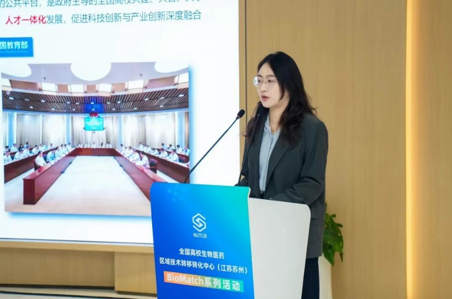 現(xiàn)場,蘇州生物醫(yī)藥分中心重點(diǎn)介紹了建設(shè)進(jìn)展、創(chuàng)新機(jī)制與資源優(yōu)勢,深度解讀高校科技成果轉(zhuǎn)移轉(zhuǎn)化服務(wù)體系,詳細(xì)闡述了為項(xiàng)目轉(zhuǎn)化落地提供的全流程賦能支持,全面彰顯其在破解成果轉(zhuǎn)化堵點(diǎn)難點(diǎn)以及推動科技成果轉(zhuǎn)移轉(zhuǎn)化過程中專業(yè)、高效、強(qiáng)勁的綜合服務(wù)實(shí)力。