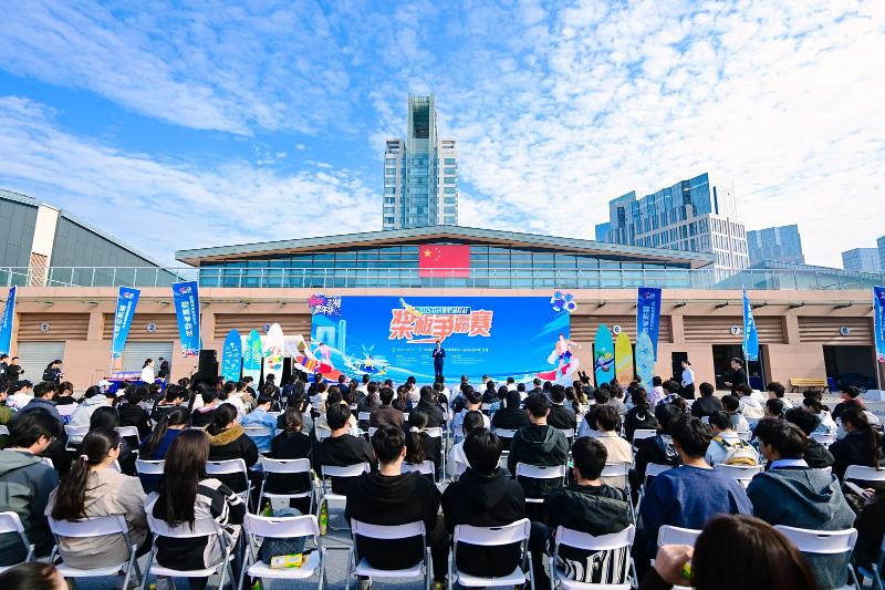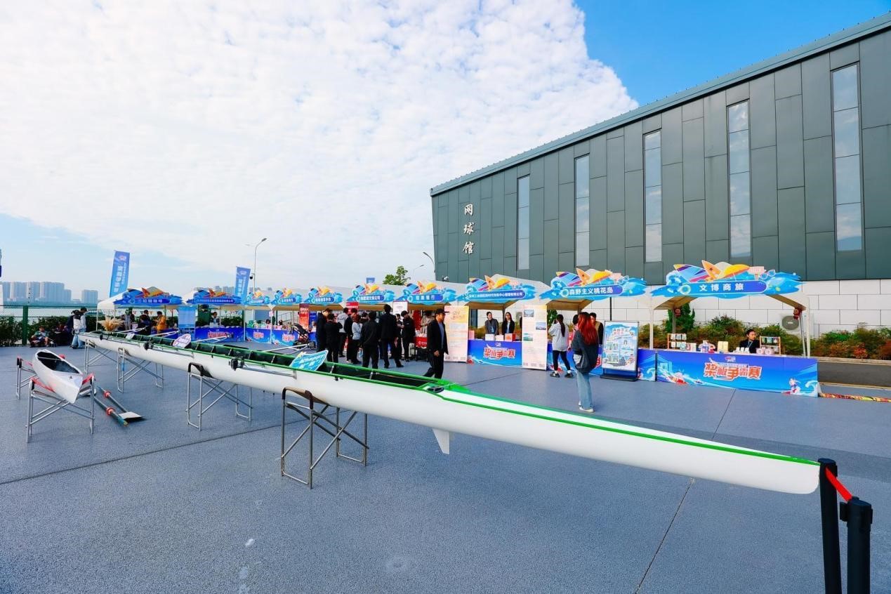 現場,隨著發令笛聲響起,選手們俯身揮槳,板身如箭般劃破水面,在秋日陽光下劃出一道道優美的弧線。岸邊加油聲、吶喊聲此起彼伏,與水聲交織成青春交響樂章。