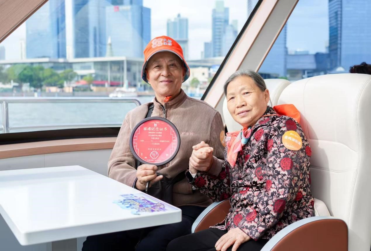 活動中,園區16對金婚、銀婚夫婦攜手漫步13.14公里的環金雞湖步道,以腳步丈量城市變遷,用相伴詮釋“一生一世”的深情。從望湖閣的游船體驗,到月光碼頭邊的閑話家常,再到飛翔雕塑前的合影留念,老人們一路親近自然,一路見證園區日新月異的發展圖景。登臨“蘇州之眼”摩天輪,老人們俯瞰園區全貌,大家紛紛感嘆:“現在的園區越來越國際化,每次來都有新驚喜!”