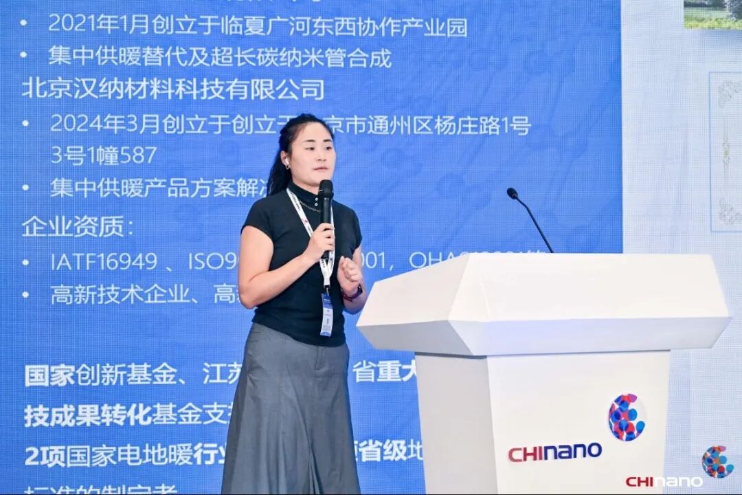 蘇州漢納材料科技有限公司銷售總監(jiān)朱晶晶,分享了《碳納米管及硅碳負極的研發(fā)及應(yīng)用進展》。該公司依托自主研發(fā)的超長碳納米管合成、無損分散及精密成膜技術(shù),實現(xiàn)電熱轉(zhuǎn)換率高達99.19%的納米發(fā)熱膜,遠紅外轉(zhuǎn)換率超85%,顯著提升能效與舒適度。同時,漢納材料在硅碳負極方向開發(fā)出10nm級納米硅合成技術(shù),為動力電池提供高性能負極方案;并在單壁碳納米管的量產(chǎn)方向取得顯著突破。企業(yè)憑借60余項專利及多地產(chǎn)學研合作,持續(xù)拓展碳材料在新能源、健康建筑等領(lǐng)域的應(yīng)用邊界。