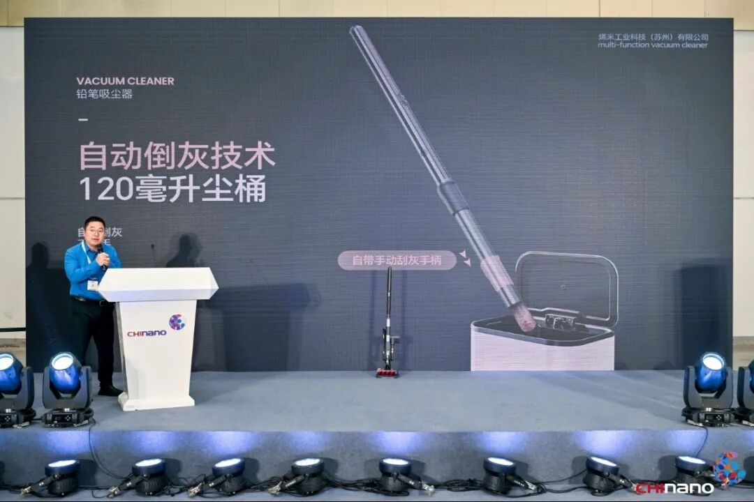 烯米工業(yè)科技(蘇州)有限公司研發(fā)總監(jiān)耿軍政,介紹了《基于碳納米材料開發(fā)的鉛筆吸塵器發(fā)布介紹》。烯米工業(yè)擁有全球唯一的自有核心技術(shù),其產(chǎn)品采用在高分子材料領(lǐng)域占據(jù)不可替代金字塔頂端地位的聚酰亞胺作為基材。基于此復合材料做基材添加,做出高強度、高模量的高性能的碳纖維材料并在此材料基礎(chǔ)上開發(fā)出靈巧輕便、纖細如筆式的新一代清潔家電。此外,該公司利用此復合材料制造出的核心原料——高品質(zhì)石墨烯粉體,制造出齒輪箱專用潤滑油,專為應(yīng)對齒輪在超高轉(zhuǎn)速工況而設(shè)計的高性能潤滑解決方案。將此專用潤滑油用在其新一代清潔家電上,攻克了在密閉環(huán)境中高轉(zhuǎn)速電機和齒輪箱的散熱問題。