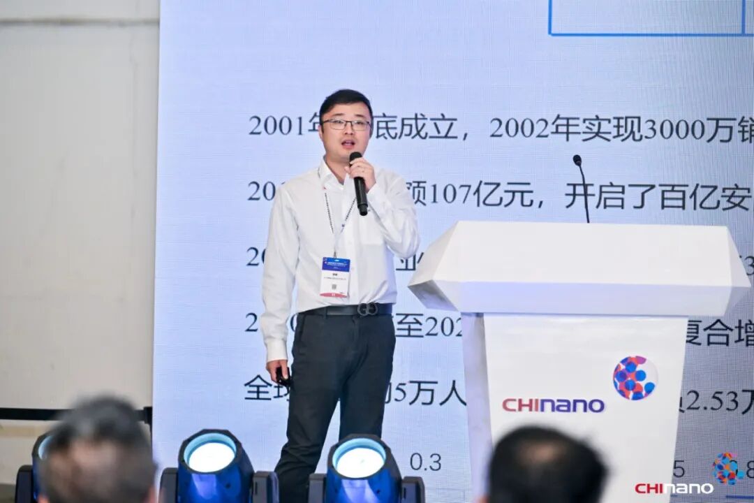 蘇州鈞祥新材料有限公司技術(shù)總監(jiān)徐黎明,帶來了主題《高通量負載的層狀氧化硅納米材料》的分享。他介紹道:其公司研發(fā)的高通量負載層狀氧化硅納米材料,突破了傳統(tǒng)金屬納米粒子負載技術(shù)瓶頸,具備超高比表面積和有序孔道結(jié)構(gòu),實現(xiàn)了金屬納米顆粒的高負載與均勻分散,有效解決了高溫燒結(jié)與團聚等行業(yè)痛點。該材料在無機抗菌、高效催化、電磁屏蔽、鋰電隔膜等領(lǐng)域展現(xiàn)出廣泛應(yīng)用潛力,已通過多家單位試用并實現(xiàn)銷售,具有成本低、性能優(yōu)、可定制等優(yōu)勢,為推動納米材料產(chǎn)業(yè)化發(fā)展提供了關(guān)鍵支撐。