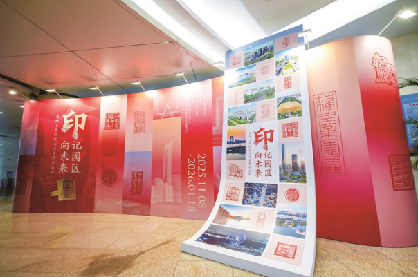 步入“印記園區印向未來——蘇州工業園區大眾篆刻作品展”展廳,一方方印章靜列于展柜,講述著這片土地自1994年開發建設以來的波瀾壯闊。