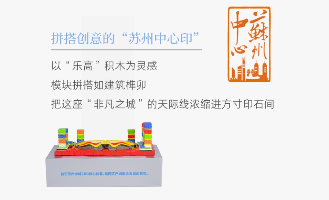 “篆刻是在方寸之間去創(chuàng)造一個世界,建筑則是在天地之間去雕刻一枚印章。”啟迪設(shè)計集團建筑師張筠之帶來了用樂高積木搭建的《蘇州中心》印章。這件充滿童真與趣味的作品,用五彩的積木堆疊出園區(qū)的活力、青春與探索精神。在她看來,園區(qū)本身就是一幅宏偉的時代畫卷,每一座錯落起伏的建筑,都是深深印刻在這片土地上的印章,鐫刻著時代的價值觀與審美,成為留給后人的文化記憶。
