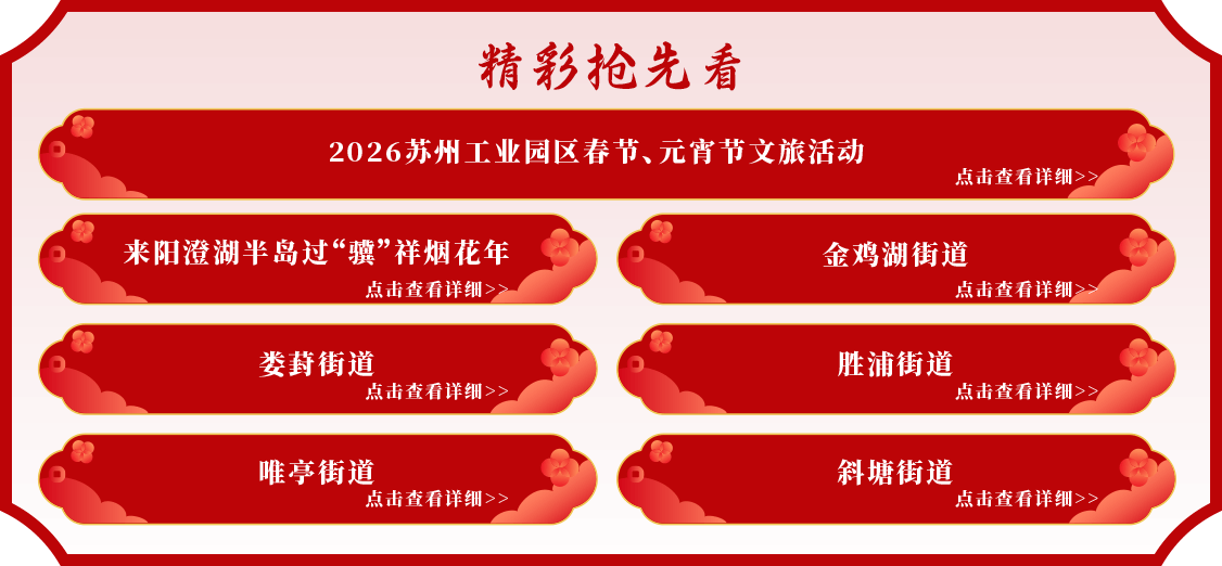 春節(jié)的腳步漸近,園區(qū)的年味也日漸醇厚。今年,園區(qū)聚焦“穩(wěn)崗、普惠、孝心、共享”,為不同群體精心準備了一份誠意滿滿的“新春暖心菜單”,讓留蘇建設(shè)者、來蘇家庭、機構(gòu)長者、一線崗位工作者等都能找到歸屬與歡樂。禮遇建設(shè)者 文旅大禮包讓“在園區(qū)過年”更有溫度今年春節(jié),園區(qū)將溫情直送一線,以“新春有你,園區(qū)有禮”為主題的暖心系列行動陸續(xù)深入街道、社區(qū)與企業(yè)集宿區(qū),為留蘇過年的務(wù)工人員及家人帶來別樣年味。活動現(xiàn)場將設(shè)置非遺互動專區(qū),邀請大家親手寫春聯(lián)、剪窗花、體驗蘇式年畫,在筆墨紙香與巧手翻飛中重溫傳統(tǒng)年俗。同時,園區(qū)精心準備的新春文旅大禮包將同步發(fā)放,內(nèi)含金雞湖景區(qū)、蘇州中心等多個... [詳細]