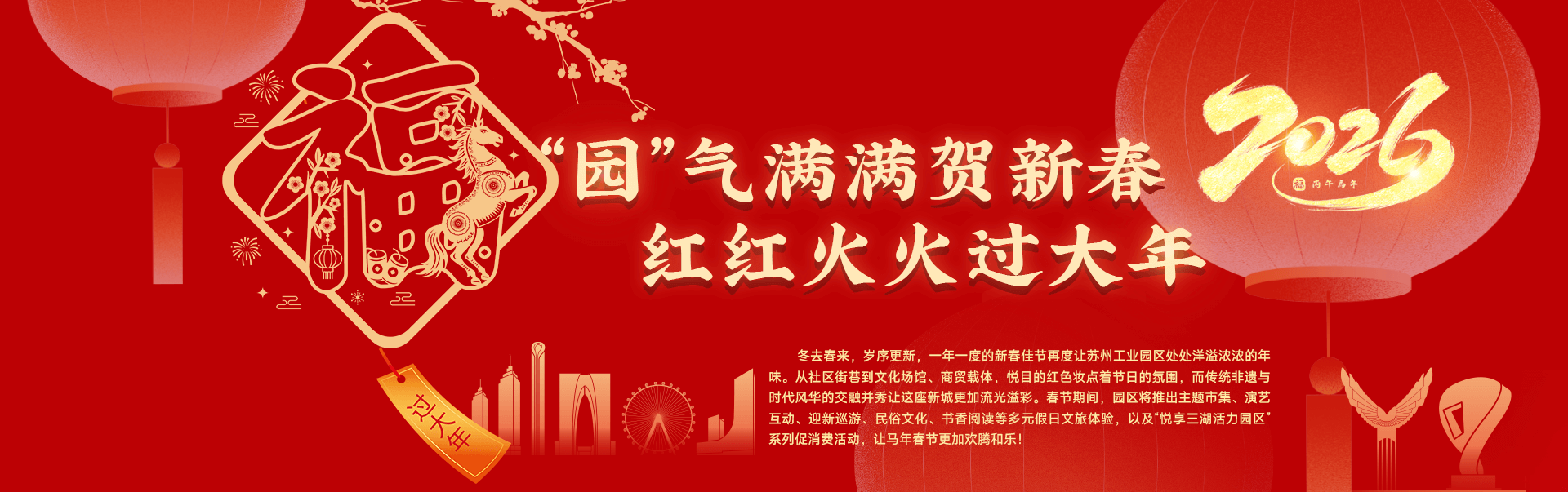 2月16日晚,園區環金雞湖燈光秀精彩亮相中央廣播電視總臺“CGTN超級夜看春晚”,與全國觀眾共度新春佳節。環金雞湖區域的新春燈光秀與紅燈籠、中國結與煙花燈飾相映成趣,呈現出一幅璀璨祥和的佳節畫卷,蘇州大道、現代大道、星湖街等主干道光影交織,營造出紅火溫暖的節日氛圍。