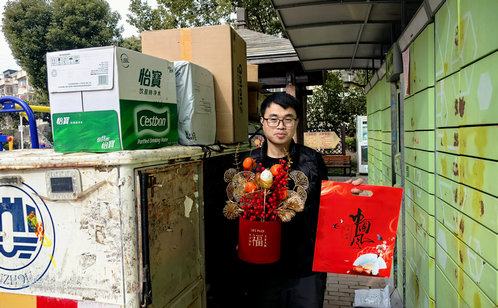 為了讓新就業群體在異鄉也能感受到濃厚的新春氛圍,度過一個溫馨祥和的春節,淞潭社區組織紅色管家志愿者,開展“巧手DIY福桶送小哥”新春祝?;顒印;顒蝇F場,志愿者們手把手教大家組裝“抱福桶”:錯落有致地插入金枝,點綴招財貓、柿子等吉祥裝飾品,一個個造型精致、滿含祝福的抱福桶在歡聲笑語中成型。志愿者們帶著親手制作的抱福桶與春聯,逐一送到快遞分揀點與配送站點,叮囑小哥們春節期間注意出行安全、保重身體健康。收到這份特別的新春禮物,小哥們臉上洋溢著幸福的笑容,紛紛表示:“這份祝福特別有意義,讓我們在他鄉也感受到了濃濃的年味兒和家的溫暖。”