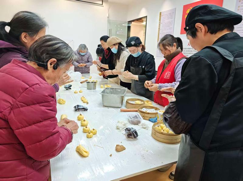 為增加轄區居民的文化生活,進一步增進鄰里情感交流,文薈苑社區開展“以食暖冬,以味連心”美食制作活動,品南瓜之香,享動手之樂?;顒右潦?,長桌便化身成為溫馨的“社區廚房”。金燦燦的南瓜泥、雪白的糯米粉、香甜的豆沙餡料一應俱全。在美食達人的帶領下,大家揉面、分團、捏窩、包餡、收口……步驟看似簡單,卻處處是手藝的考驗。大家互相切磋著“不粘手”的秘訣,分享著家鄉的不同做法,在鍋碗瓢盆的輕聲碰撞與陣陣歡聲笑語中,鄰里情誼如同這手中的面團,愈發緊密而柔韌。