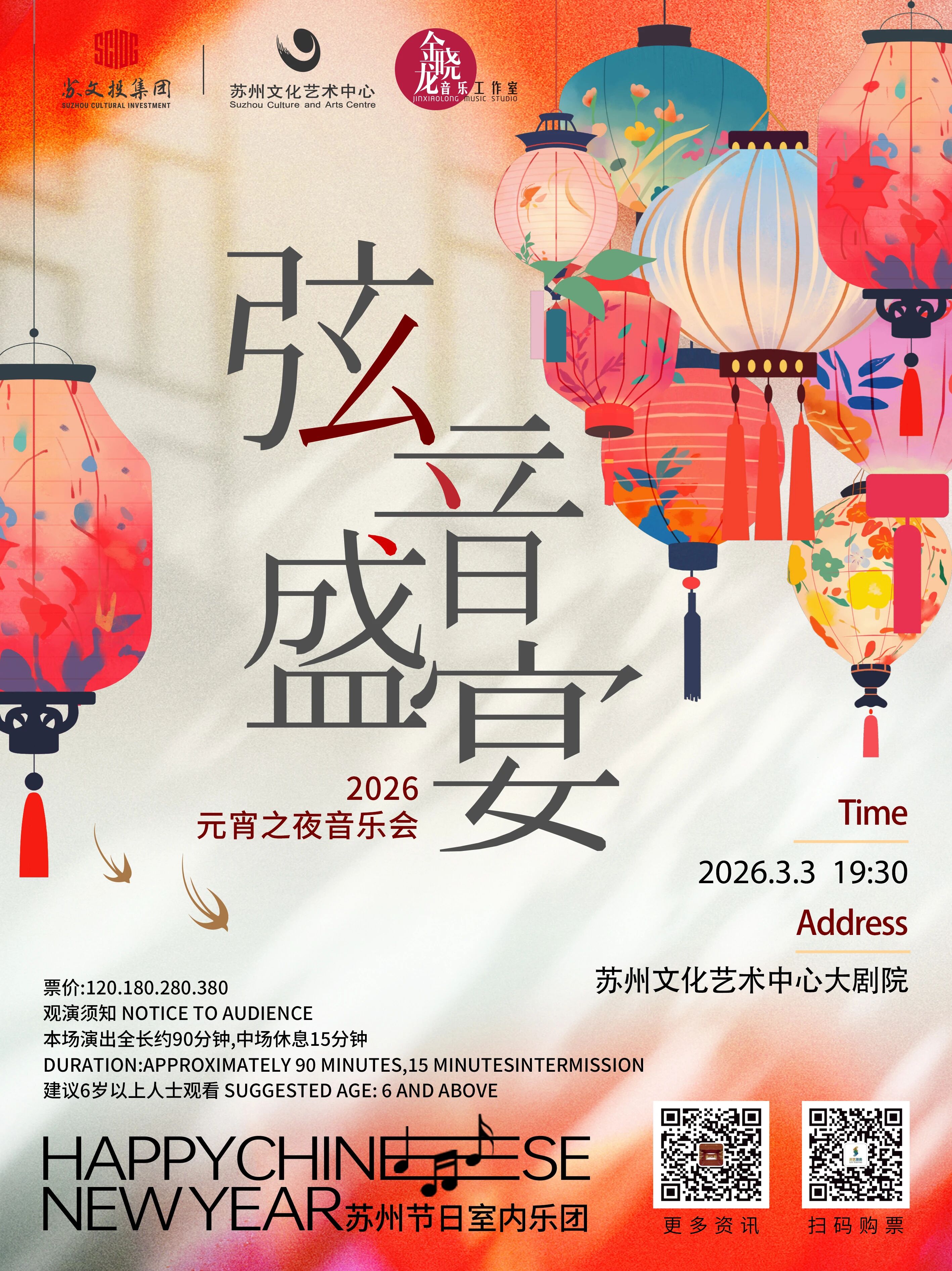 元宵節(jié),蘇州著名小提琴藝術(shù)家金曉龍與他的朋友們將來(lái)到蘇州文化藝術(shù)中心大劇院,為觀眾帶來(lái)精彩的弦樂(lè)演奏,演出曲目涵蓋了多位大師的浪漫曲,邀您一起共度弦音盛宴2026元宵之夜音樂(lè)會(huì)。