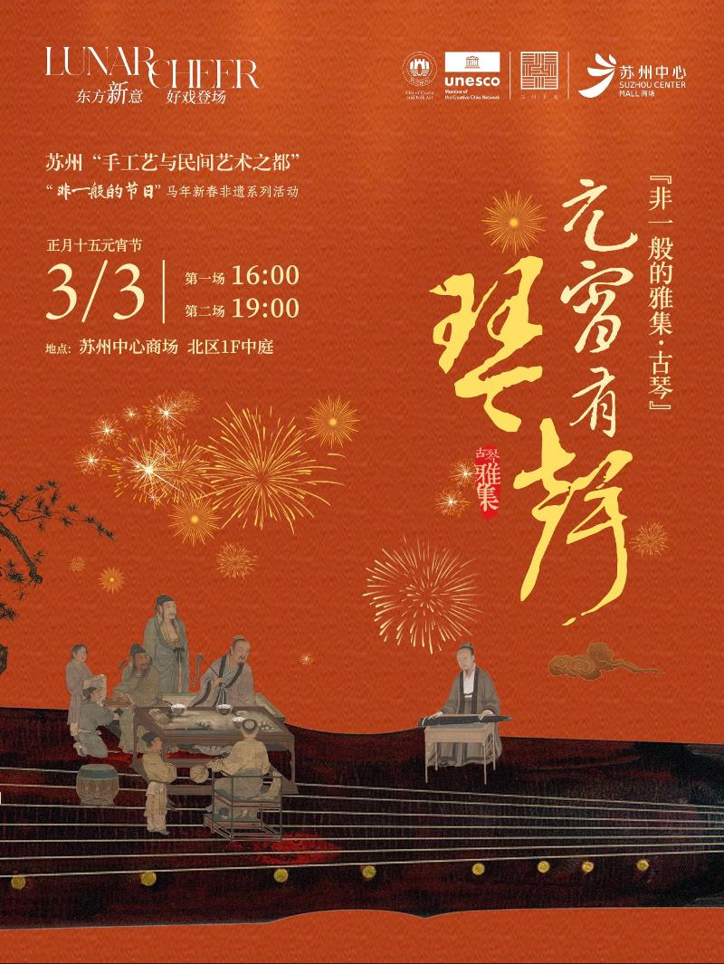 3月3日,蘇州中心商場(chǎng)北區(qū)一樓中庭將舉辦“非一般的雅集?古琴”專場(chǎng)。指尖輕撥,清音流轉(zhuǎn),邀市民與游客共赴一場(chǎng)滌蕩心靈的聽(tīng)覺(jué)雅集。現(xiàn)場(chǎng)將奏響《賽馬》《梅花三弄》《上春山》等經(jīng)典曲目,共設(shè)兩場(chǎng)演出,分別于16:00、19:00開(kāi)場(chǎng)。元宵佳節(jié),不妨移步蘇州中心,聽(tīng)一曲清音入耳,共賞雅韻。