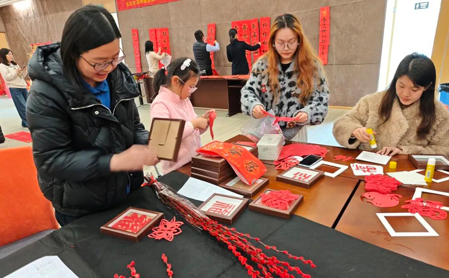 活動(dòng)現(xiàn)場(chǎng)氣氛熱烈,紅紙翻飛,墨香四溢。提筆落墨間,“春風(fēng)送暖花千樹 駿馬揚(yáng)蹄路萬程”“闔家安康皆如意 滿門福氣盡亨通”等一副副新春祝福春聯(lián)和“福”字躍然紙上。參與者們揮毫潑墨,親手書寫“春風(fēng)得意”“平安喜樂”等祝福語,感受中華優(yōu)秀傳統(tǒng)文化的魅力;剪刀翻飛下,一張張紅紙化作“福”字、馬年生肖等主題窗花,增添了節(jié)日的喜慶氛圍;在體驗(yàn)拓印技藝的過程中,大家將“馬上有福”“2026 福”等字樣拓印在紅紙上,收獲了各具特色的新春裝飾。共同迎接新年的喜悅,拉近了度假區(qū)企業(yè)、社區(qū)之間的距離,營(yíng)造出“企業(yè)共建、鄰里和睦”的和諧氛圍,為區(qū)域資源聯(lián)動(dòng)奠定了良好基礎(chǔ)。