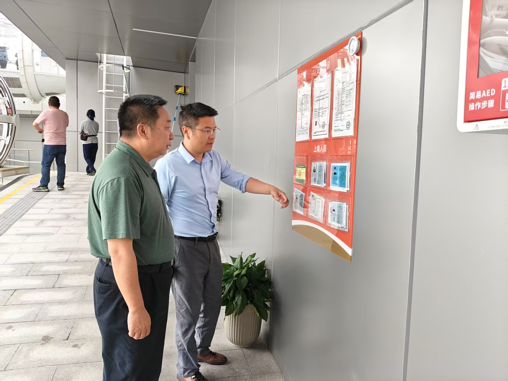 隨著“五一”假期的臨近,為切實保障特種設備安全運行,園區市場監管局高度重視,對金雞湖摩天輪、國際博覽中心等重點場所開展節前安全督導工作?,F場了解金雞湖摩天輪開業一個多月的設備運行狀況、人流量、人員值班值守情況,提出完善乘客須知、作業人員公示板等信息。結合國際博覽中心的展會需求,監察人員和特檢院專家對人流量較大的扶梯、乘客電梯等開展重點隱患排查,測試緊急停止及其他安全保護裝置,建議使用單位負責人提前做好更換計劃,為游客和參展人員提供一個安全可靠的環境。
