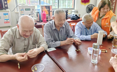 面對銀齡群體精神文化供給不均衡現(xiàn)狀,蓮韻社區(qū)日間照料中心創(chuàng)新打造“藝趣工坊”,推出菩提串珠、水晶花藝、綠植盆栽等手工課程,為長者搭建了一座“精神糧倉”,在創(chuàng)造中重拾生活意趣。在紅色管家志愿者的指導下,一顆顆菩提籽在指尖串聯(lián)成寓意吉祥的珠鏈,晶瑩剔透的水晶花在巧手下綻放出別樣光彩,充滿生機的綠植盆栽在精心照料中煥發(fā)盎然綠意,這些手工項目宛如“生活的調色盤”,不僅成為疏解孤獨感的“情緒減壓閥”,更以美育浸潤煥發(fā)銀齡精神風貌,推動社區(qū)文化服務從零散活動向常態(tài)化滋養(yǎng)體系躍升,為精塑“雅趣共生”服務格局注入鮮活脈動。