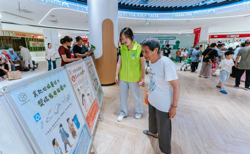 趣味游戲區的創意設計亮點頻出。居民們手持打卡地圖,穿梭于“垃分視力表”“分類大轉盤”“綠色補給站”等八大互動點位,通過趣味測試、知識問答、投擲游戲等方式邊玩邊學。“‘瓶’什么都給我”專區人氣爆棚,居民王阿姨用積攢的飲料瓶兌換了綠蘿,笑得合不攏嘴。“城投再生”“綠色補給站”和“舊物煥新”專區也深受居民青睞,居民們拎著紙箱、舊衣物排隊兌換環保袋、文具等實用物品,直觀感受到“垃圾是放錯位置的資源”。游戲化體驗不僅提升了垃圾分類知識的趣味性和互動性,更讓居民在輕松愉悅的氛圍中掌握分類技巧、提升環保意識。針對還不太熟悉如何正確分類的居民,志愿者則一對一講解垃圾分類知識,實現寓教于樂“零距離”。此外,志愿者們還同步宣傳倡導“光盤行動”“限塑”“減少使用一次性用品”等源頭減量、簡約適度的生活方式。