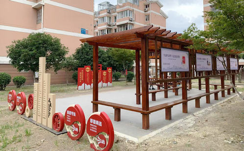 為填補社區法治文化陣地空白,讓居民在家門口便捷學法,淞漁社區打造的法治文化新空間法治文化長廊完成建設并正式投入使用。長廊內懸掛“維護法律權威,共建法治社區”“學法人人受益,守法人人和諧”等鮮明標語,打造抬頭可見的法治文化環境,并特別增設法治主題微景觀區,巧妙融入“法”字、窗花、法律名稱等元素,形成兼具教育性與觀賞性的小型景觀帶,讓法治長廊成為提升社區法治氛圍的重要陣地。為回應居民休憩議事需求、挖掘集體記憶潛力,淞源社區積極探索援法議事新實踐,依托承載居民情感的百年香樟,打造了集休憩、議事、普法功能于一體的“香樟樹下議事園”。在保留原有自然風貌基礎上,園內增設桌椅、遮陽棚、信箱等便民設施,將自發聚集點升級為功能完善的公共空間。同時,社區創新設置援法議事機制,使該園成為社區協商、依法解決身邊事的實踐平臺,讓這處充滿溫度的議事空間成為法治精神融入基層治理的新載體。