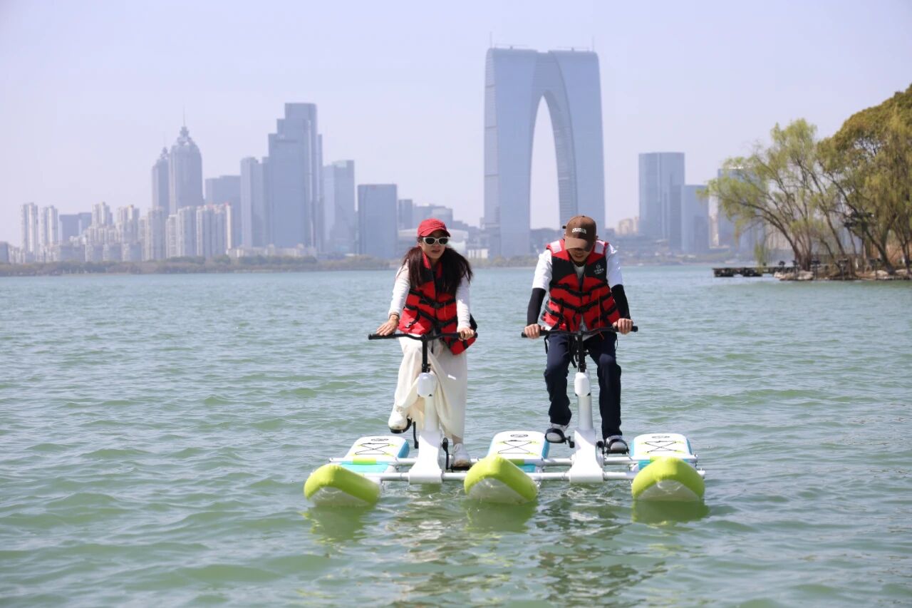 水上項目方面,游客可乘船登臨桃花島,漫步光嶼牧場與萌趣動物互動,打卡叢林魔網的驚險刺激,或是搭乘小火車穿梭林間、體驗水上自行車的自在愜意,一站式解鎖多元戶外樂趣;中央河觀光專線日夜皆宜,白日看兩岸綠植蔥郁、建筑錯落,夜間賞燈光璀璨、晚風拂面,沉浸式感受園區的現代風情;若是偏愛動感體驗,浮筒船、雙體大帆船、龍骨帆船等多種選擇讓游客在風與水的相擁中收獲別樣快感。
