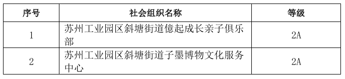 2025年度蘇州工業園區社會組織等級評估結果公示