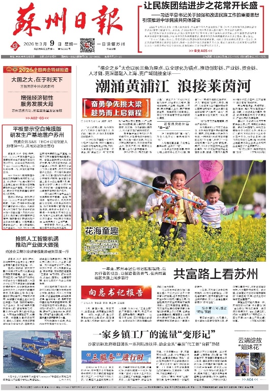 《蘇州日?qǐng)?bào)》2026年03月09日A01版